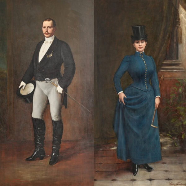 Weibliches Porträt im Reitkostüm (1900), Öl auf Leinwand, 234 x 122 cm